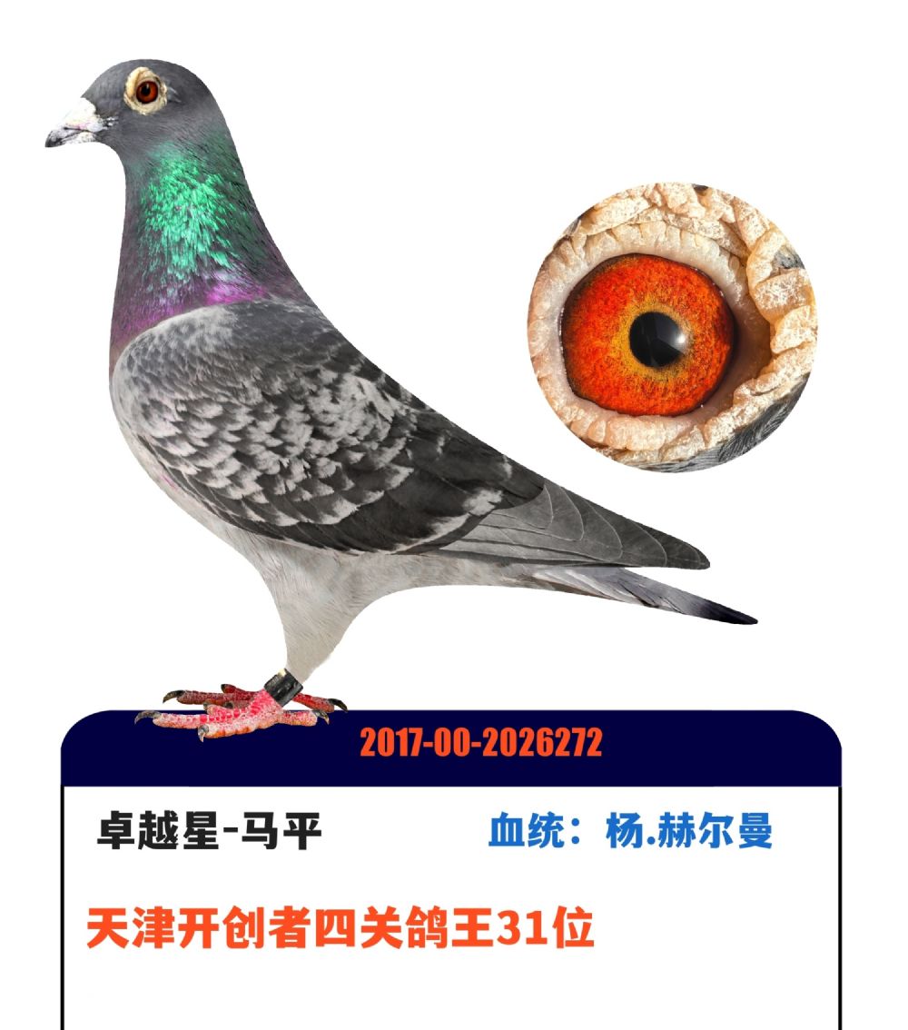 2017年北京卓越星马平,天津开创者院内参赛鸽,四关综合鸽王31位。