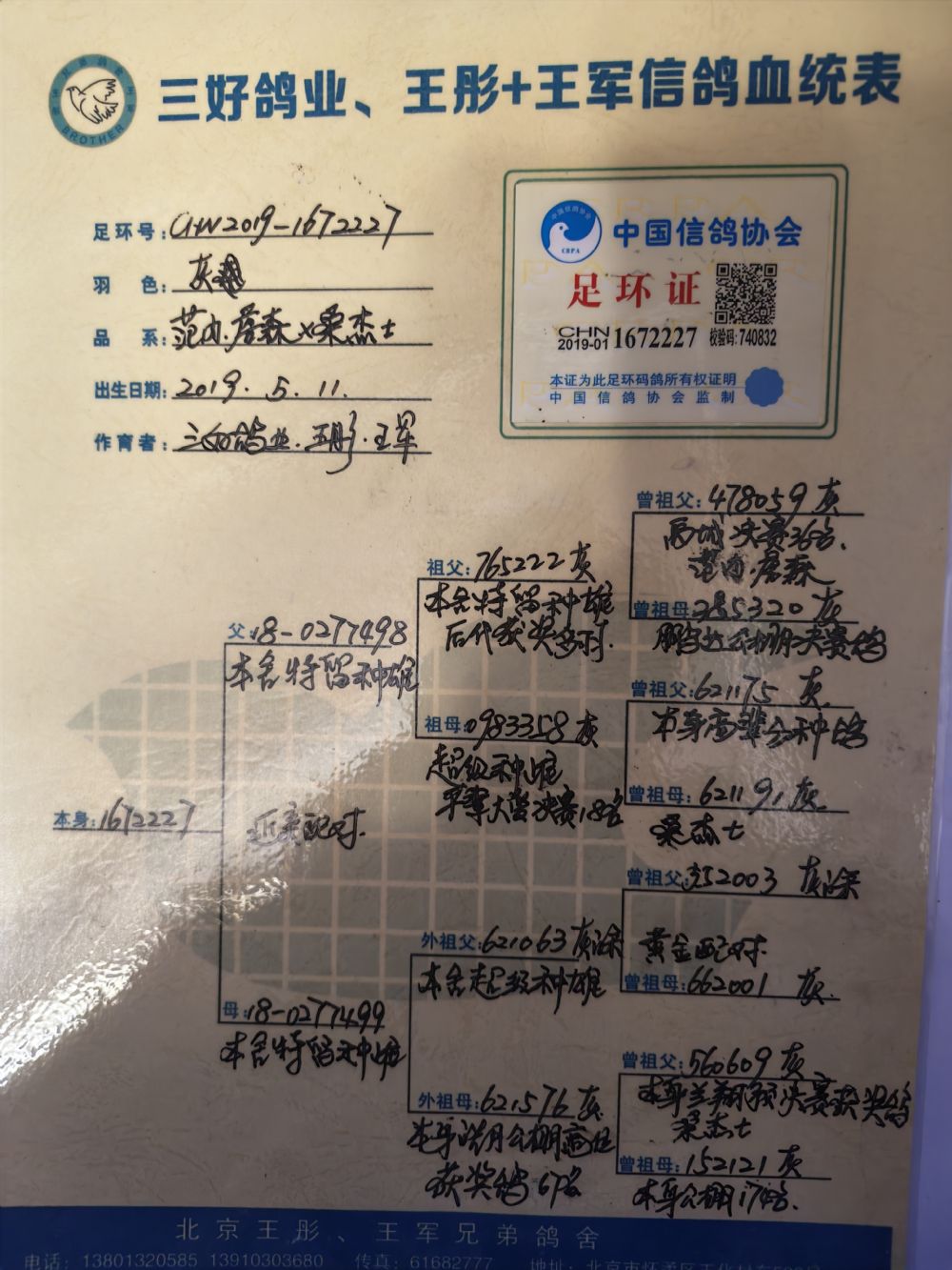 北京三宝鸽业种雄,范内詹森x桑杰士,质量一流。子代多羽发挥。