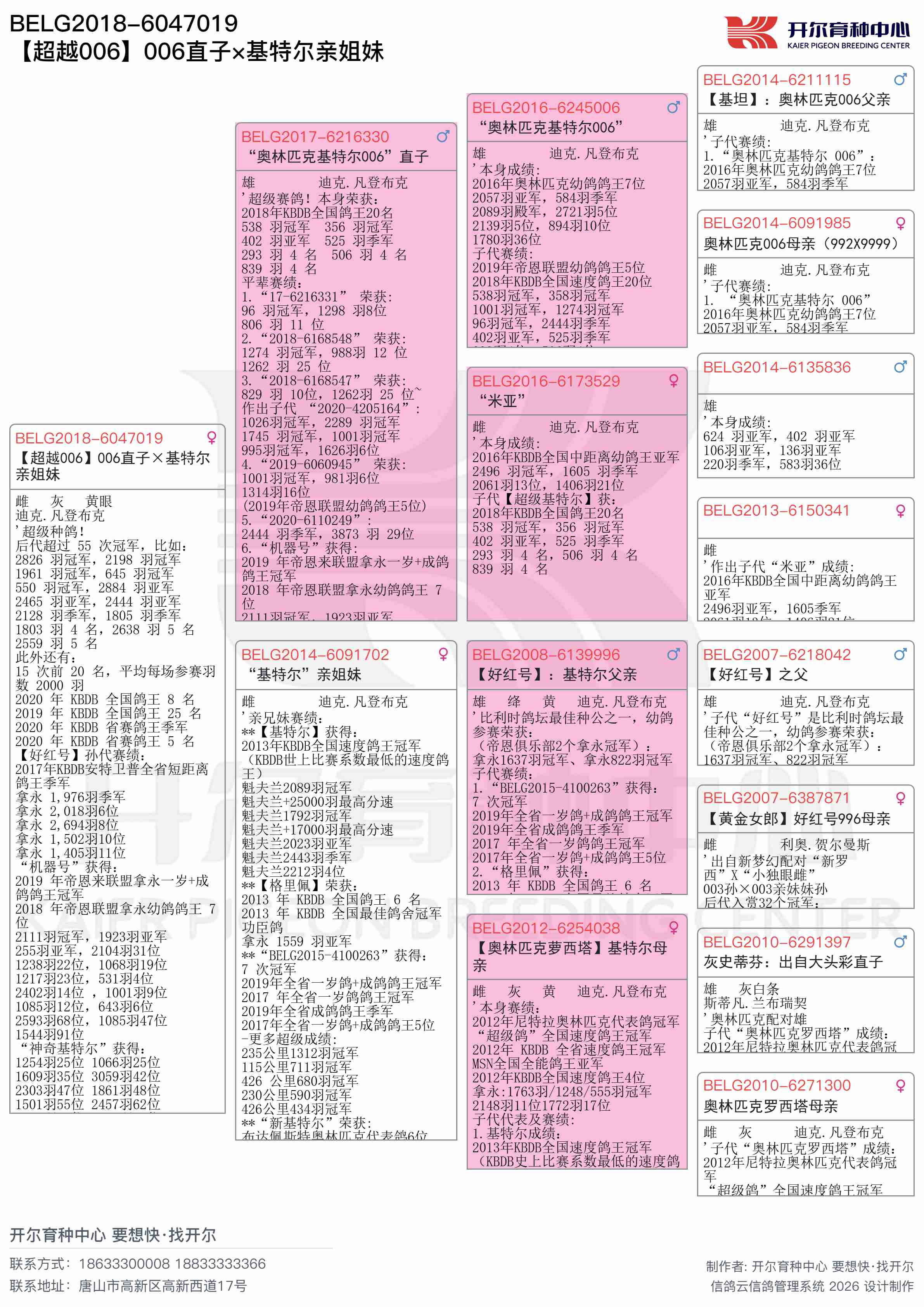 ● 本鸽: BELG2018-6047019 【超越006】006直子×基特尔亲姐妹