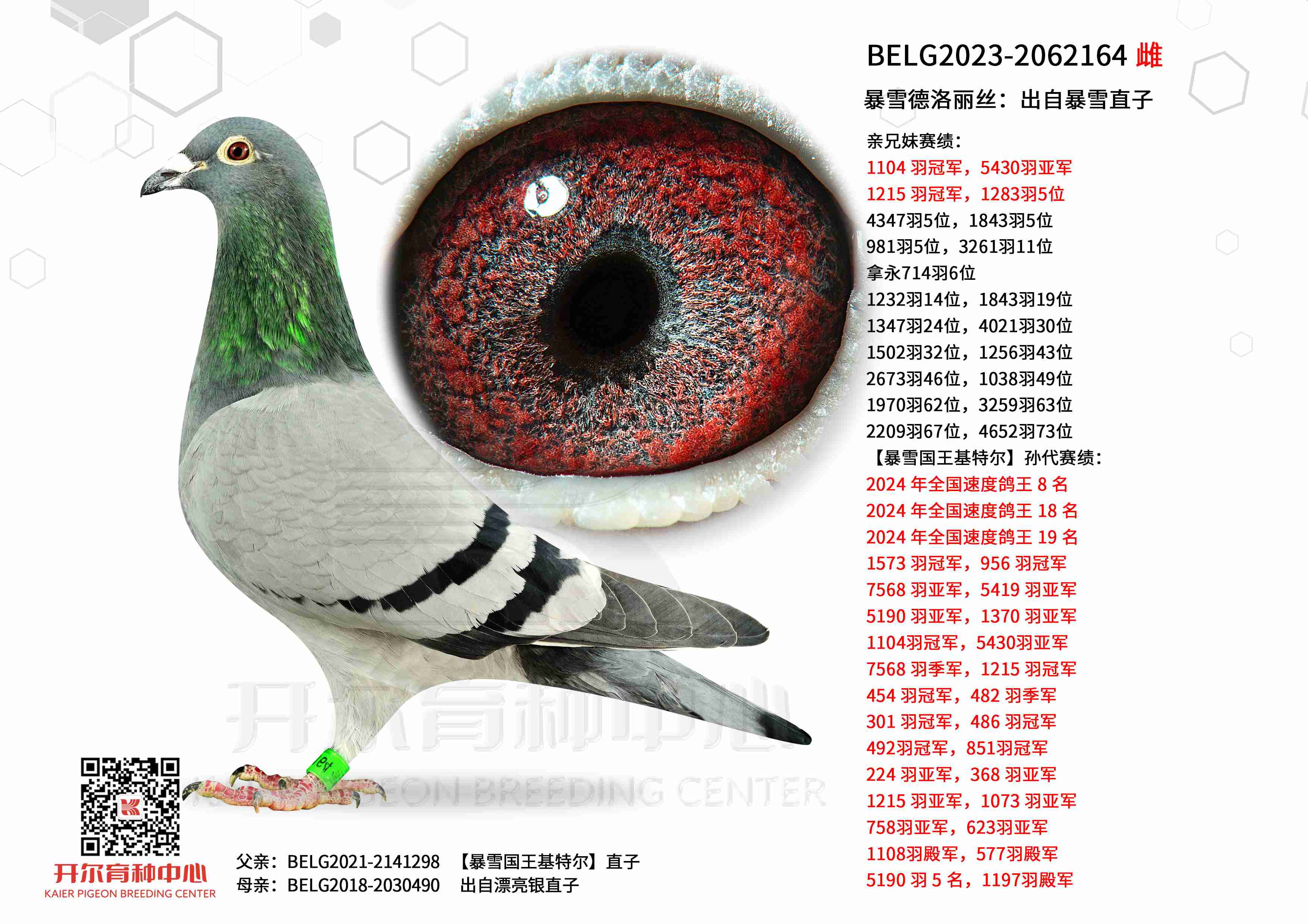 ● 本鸽: BELG2023-2062164 暴雪德洛丽丝:出自暴雪直子