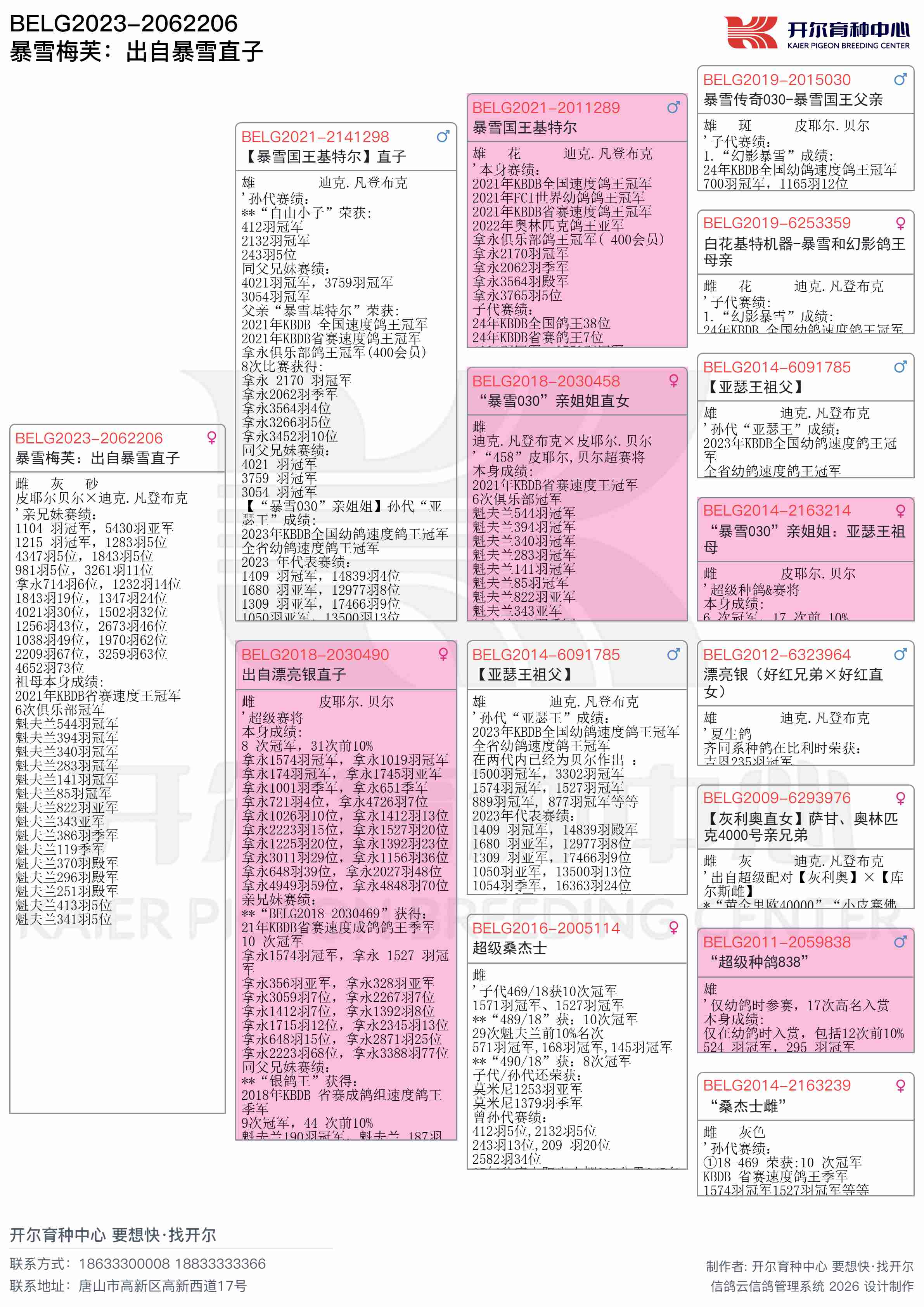 ● 祖母: BELG2018-2030458 “暴雪030”亲姐姐直女