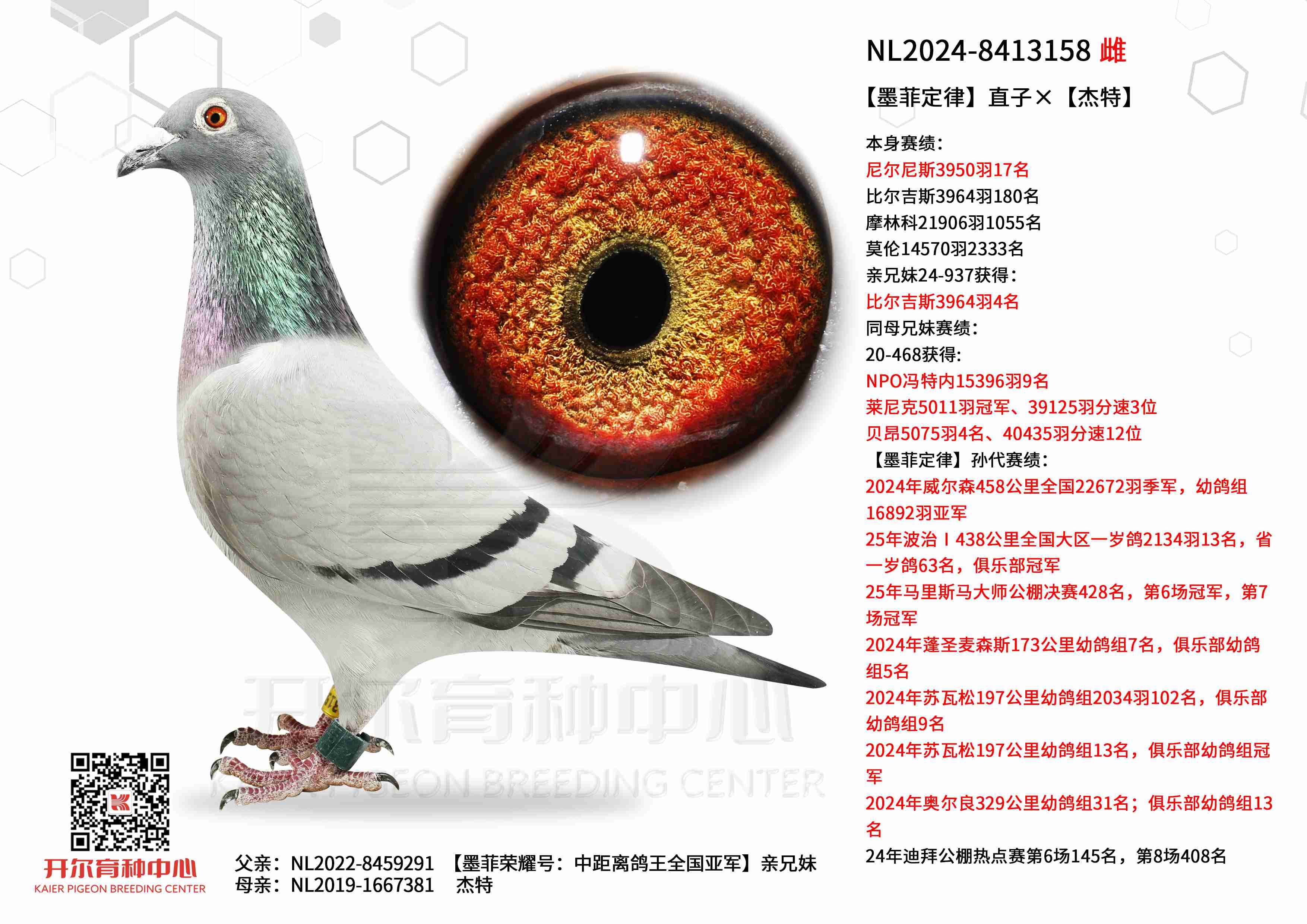 ● 父亲: NL2022-8459291 【墨菲荣耀号:中距离鸽王全国亚军】亲兄妹