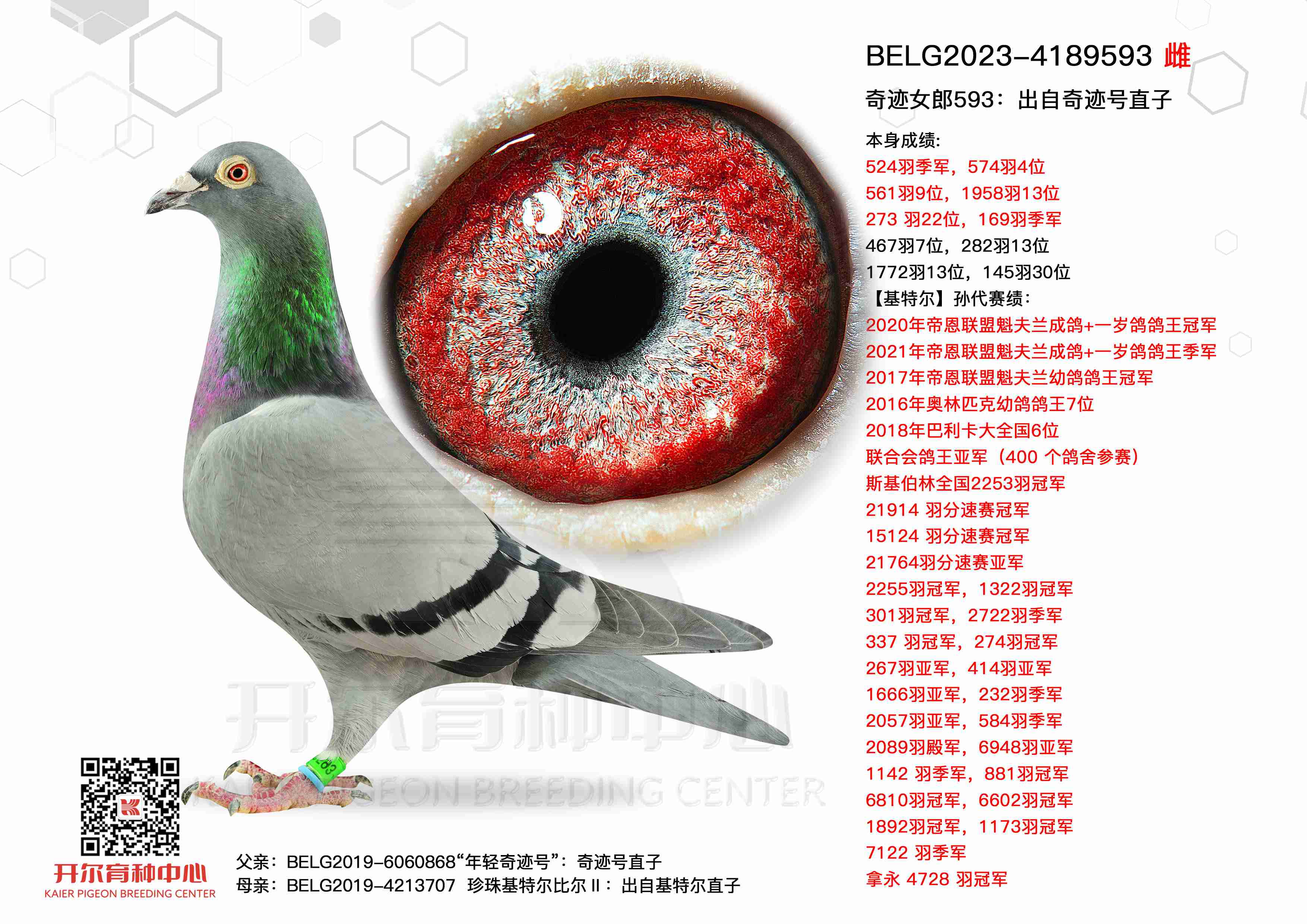 ● 本鸽: BELG2023-4189593 奇迹女郎593:出自奇迹号直子