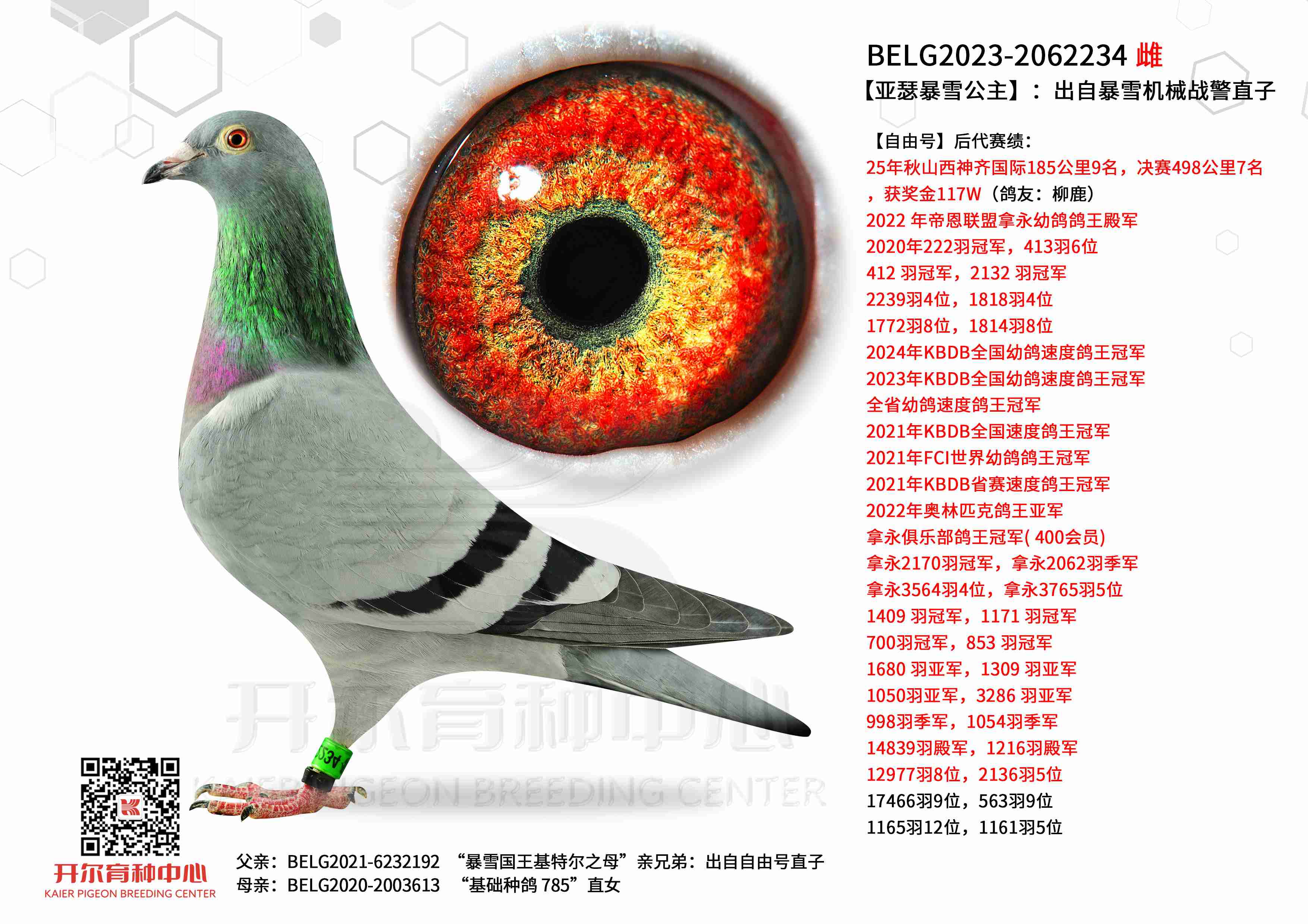 ● 母亲: BELG2020-2003613 “基础种鸽 785”直女