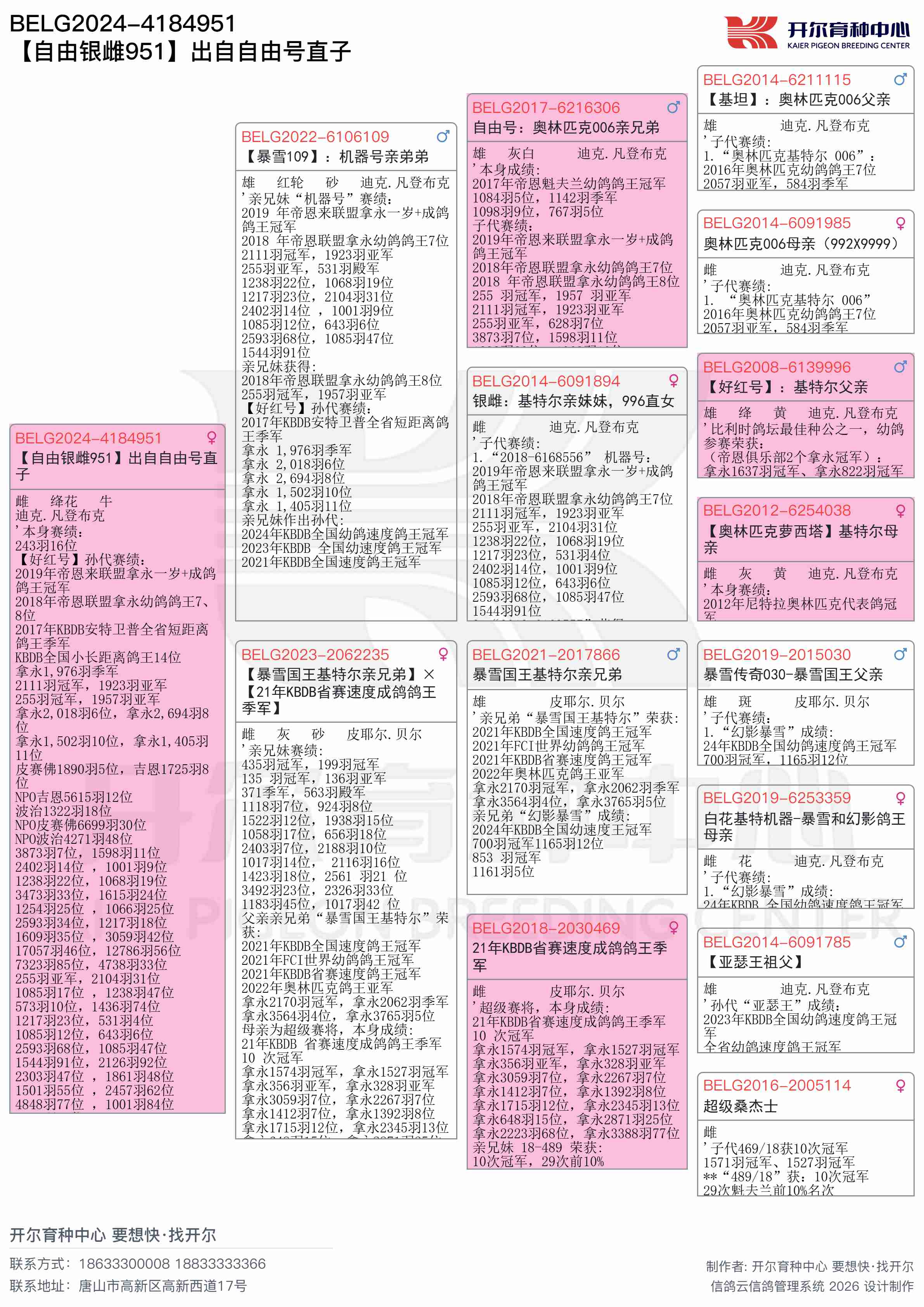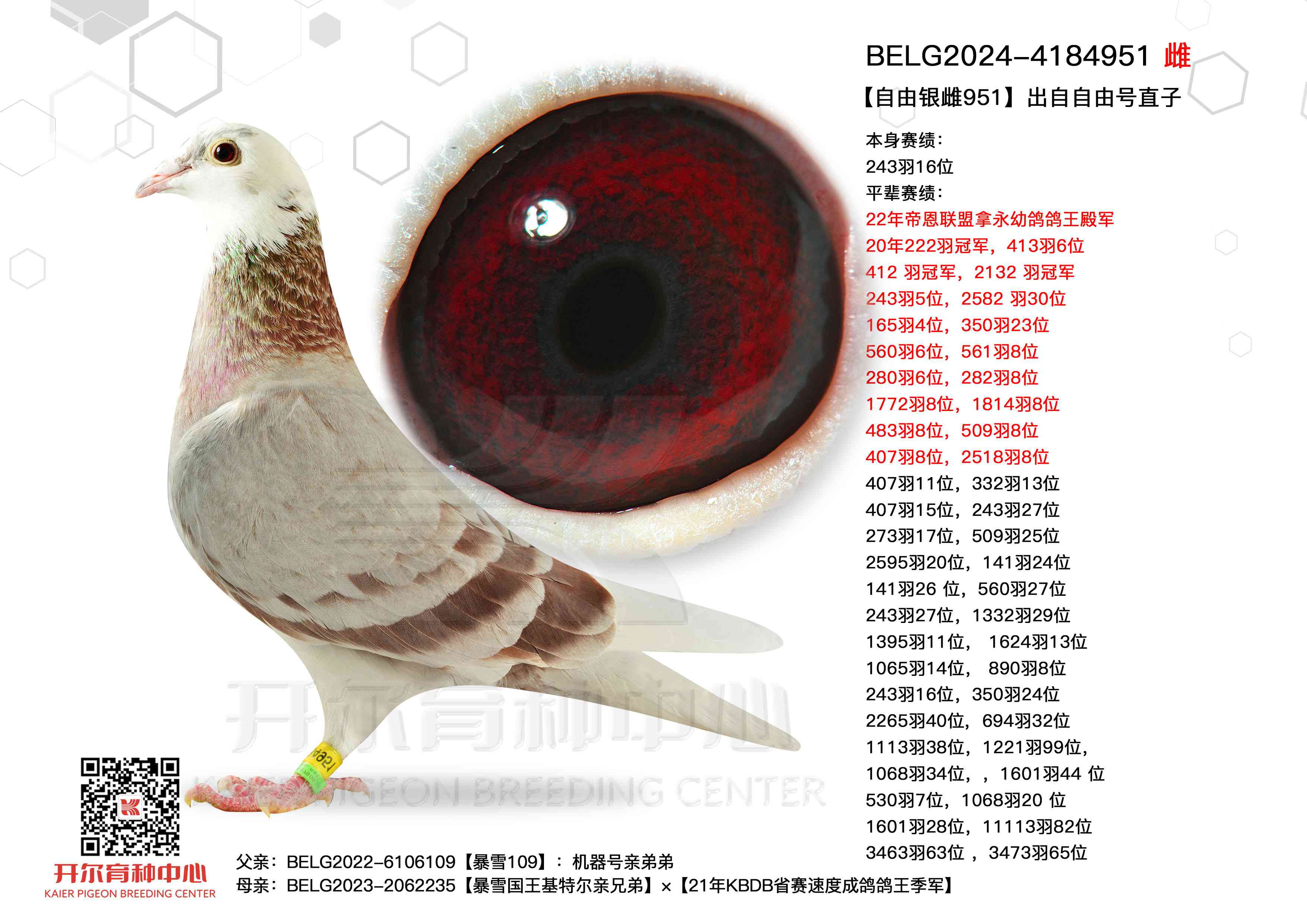 ● 本鸽: BELG2024-4184951 【自由银雌951】出自自由号直子