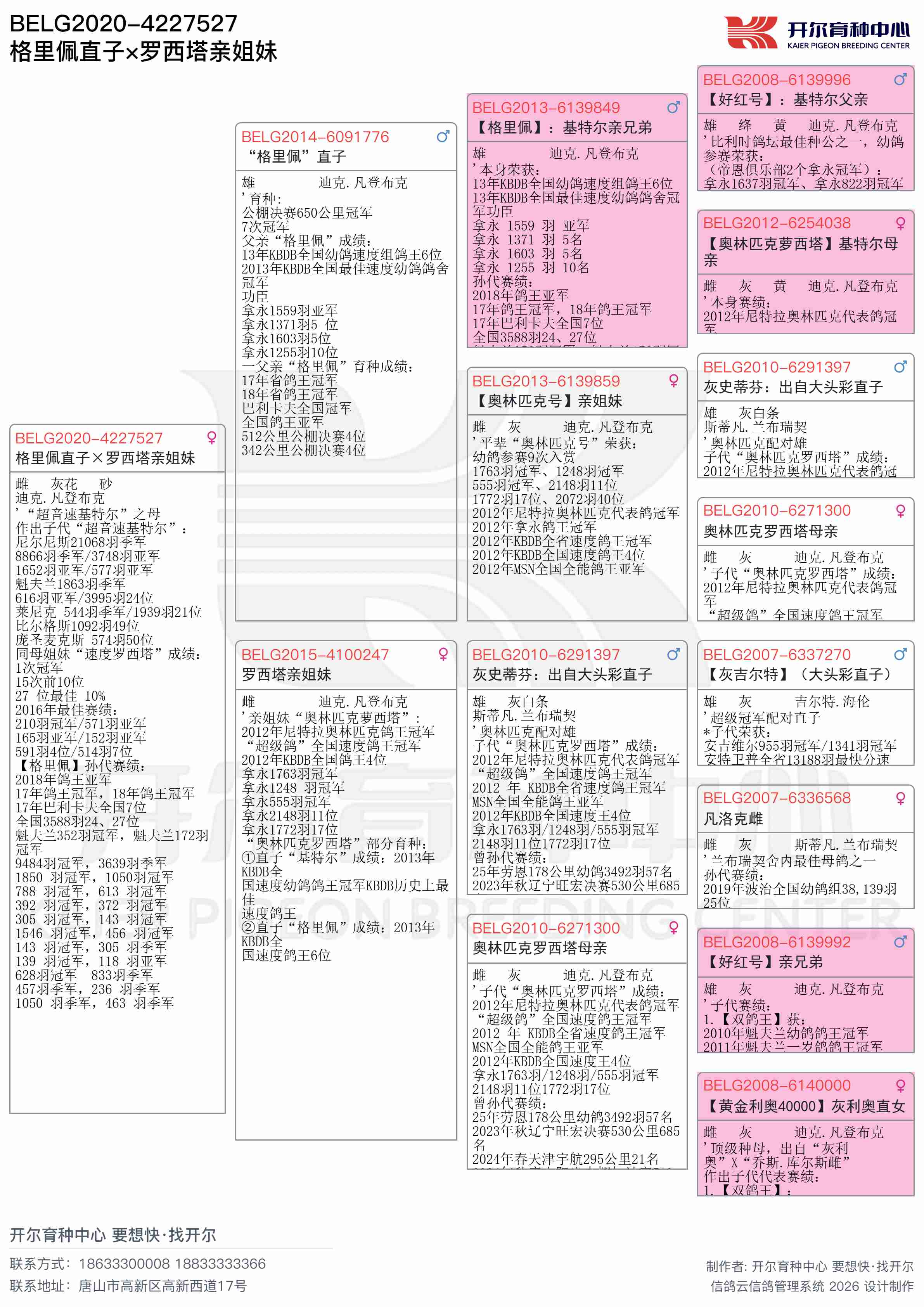 ● 祖母: BELG2013-6139859 【奥林匹克号】亲姐妹