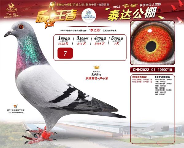 300公里331名,400公里68名,决赛500公里8名,三关鸽王15位。