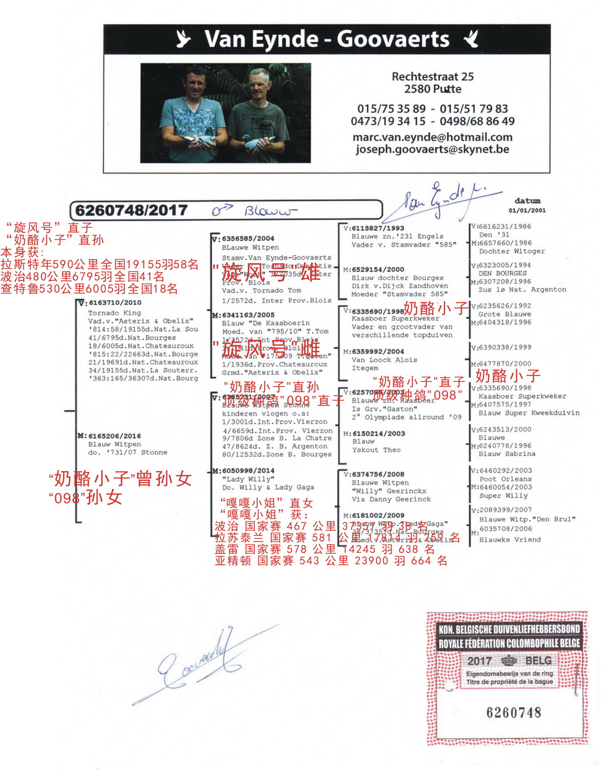 “旋风号”配对雌鸽,历史上最佳配对之一!