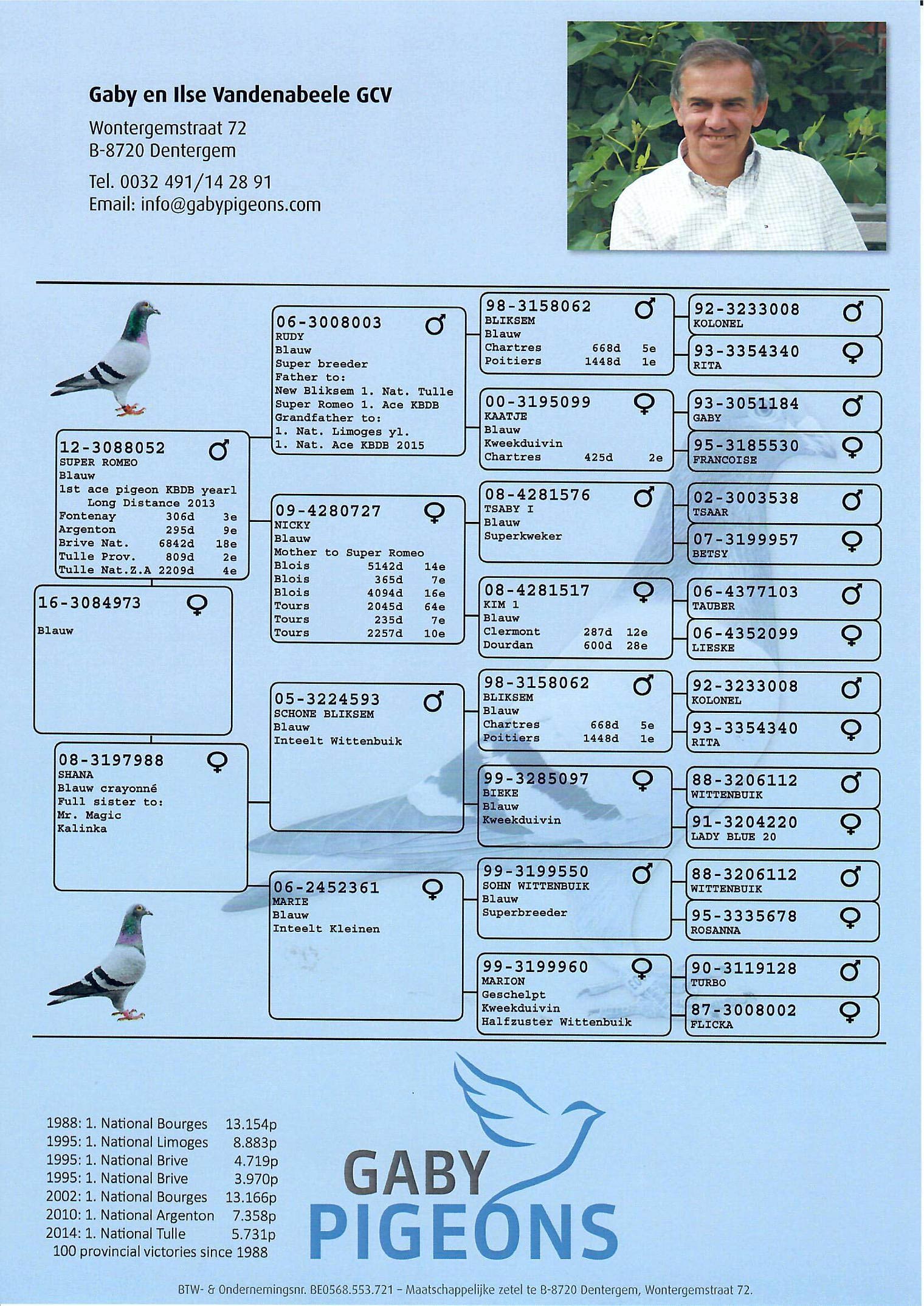 2016年比利时4场(大)长距离赛最佳一岁鸽冠军