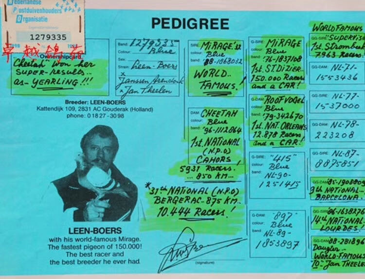 NL92-1222511“Ferrari”92年世界上飞的最快的鸽子
