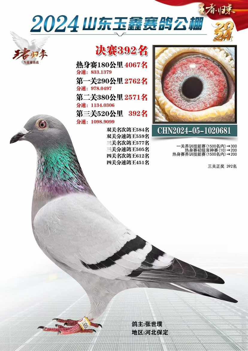 2015年波治全省1415羽冠军/全国大区2976羽8位