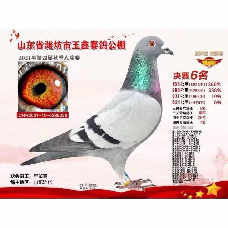 山东玉鑫公棚 300KM338名预赛十名决赛六名三关鸽王季军