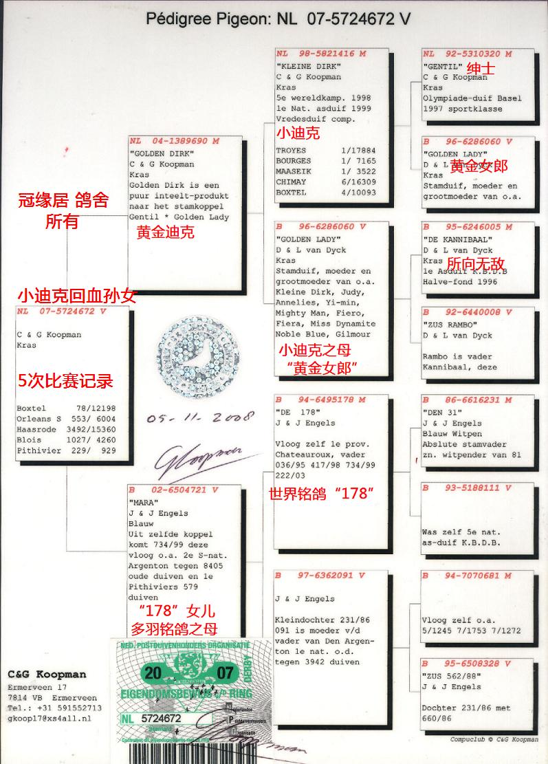 考夫曼原棚超级种鸽“罗伊斯”X“安娜丽丝”代表直子(国内最高辈份)