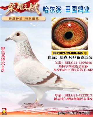 2024-29-0017445 父亲;BELG21-4209846 基特尔四重近亲直孙 本身作出中卫四关鸽王18位