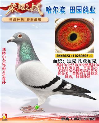 2023-11-0269795 基特尔全兄弟709配罗西塔全妹作出直孙女,平辈作出 多羽开尔公棚奖鸽后代发挥众多,黄海鸣大哥特意挑选,特留种鸽 本身公棚公棚决赛奖鸽