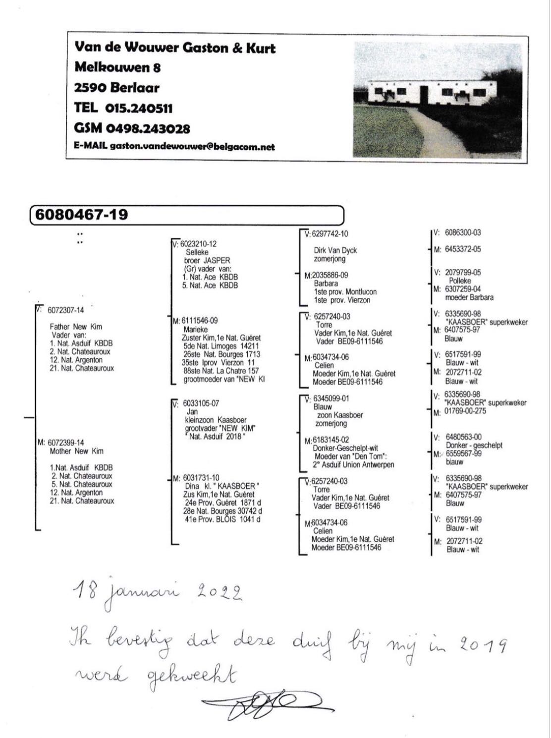 父亲:BE19-6080467【新金姆兄弟】。母亲:BE19-6080455【新金姆表姐妹】。