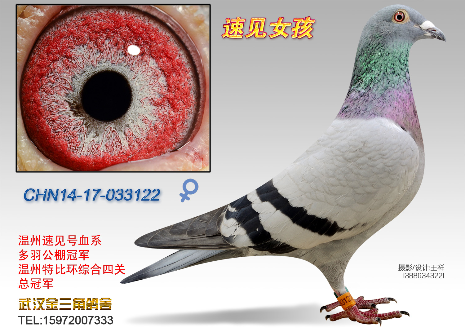 母CHN2014-17-033122 速见女孩与飙风楚霸王作出直女荣获2016秋新疆和田玉决赛冠军 温州速见号血系BOB等多羽公棚鸽王冠军 温州特比环综合四关总冠军此系作出冠军前十数百羽